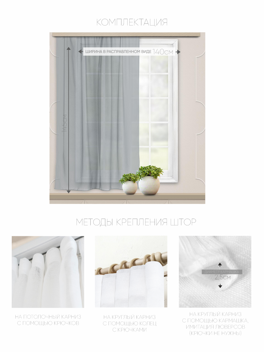 Штора Witerra вуаль 140*145 см серый информация: