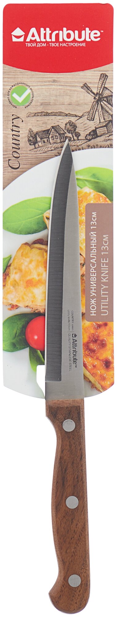 Нож универсальный ATTRIBUTE "COUNTRY" 13см, нержавеющая сталь/дерево