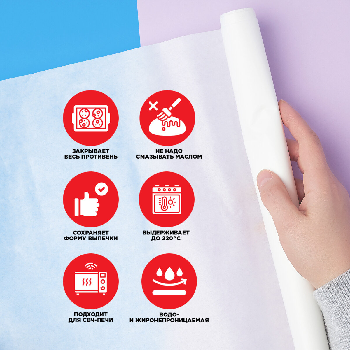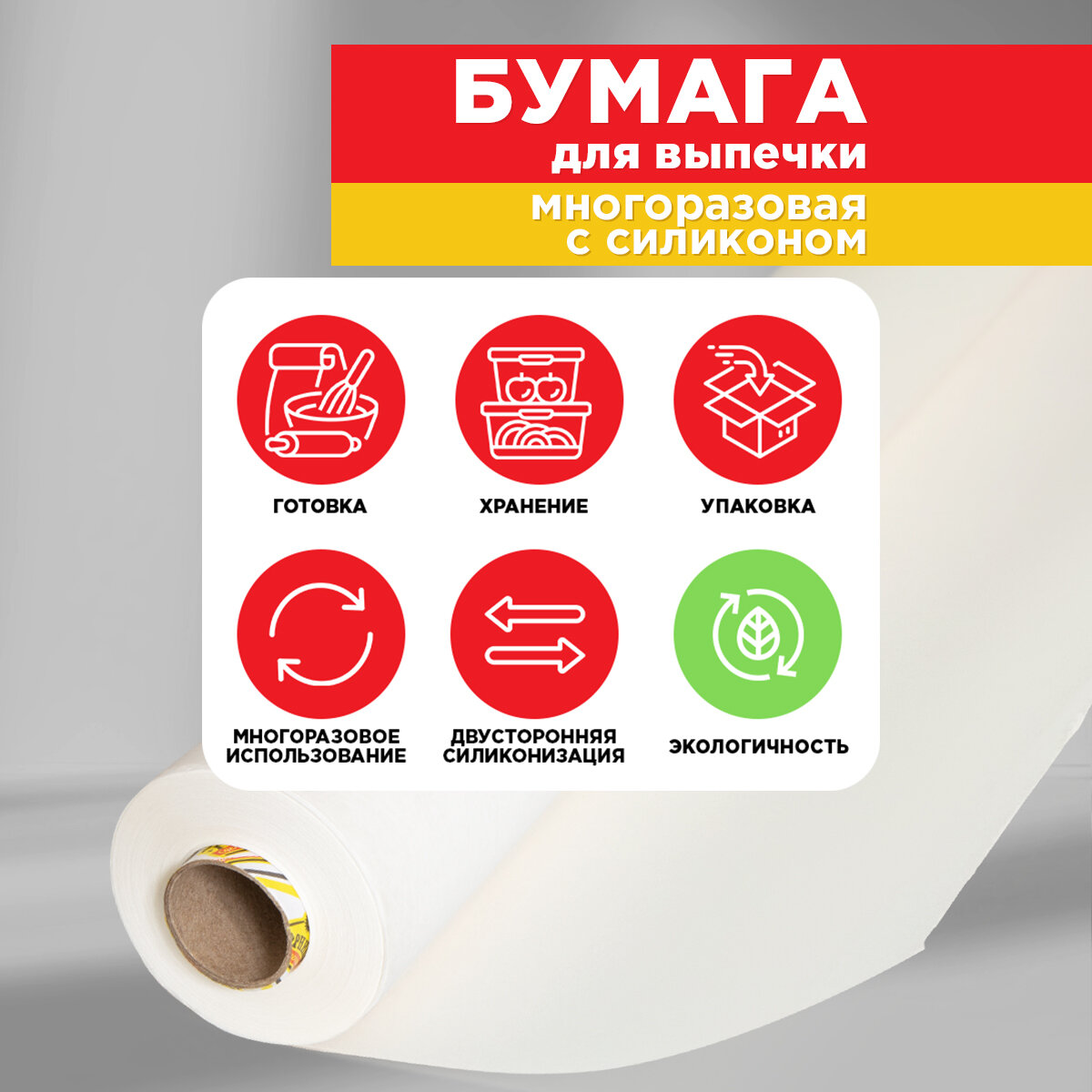 Отзывы на Бумага для выпекания, белая, Горница, 38см * 50 м, плотность - 41 г/кв.м, с двухсторонней силиконизацией, до + 280 °C (209-042)