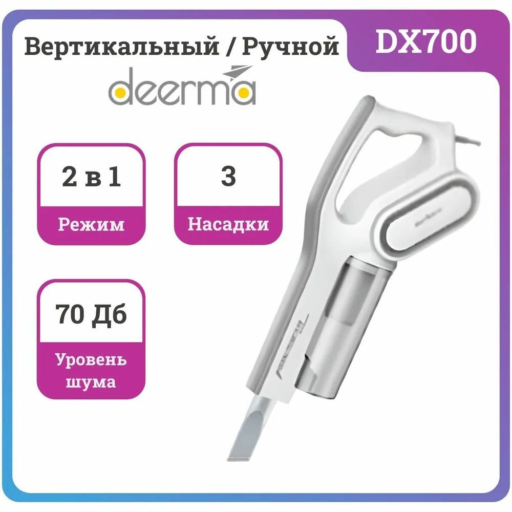 Пылесос вертикальный Deerma DX700 Vacuum Cleaner, белый информация:
