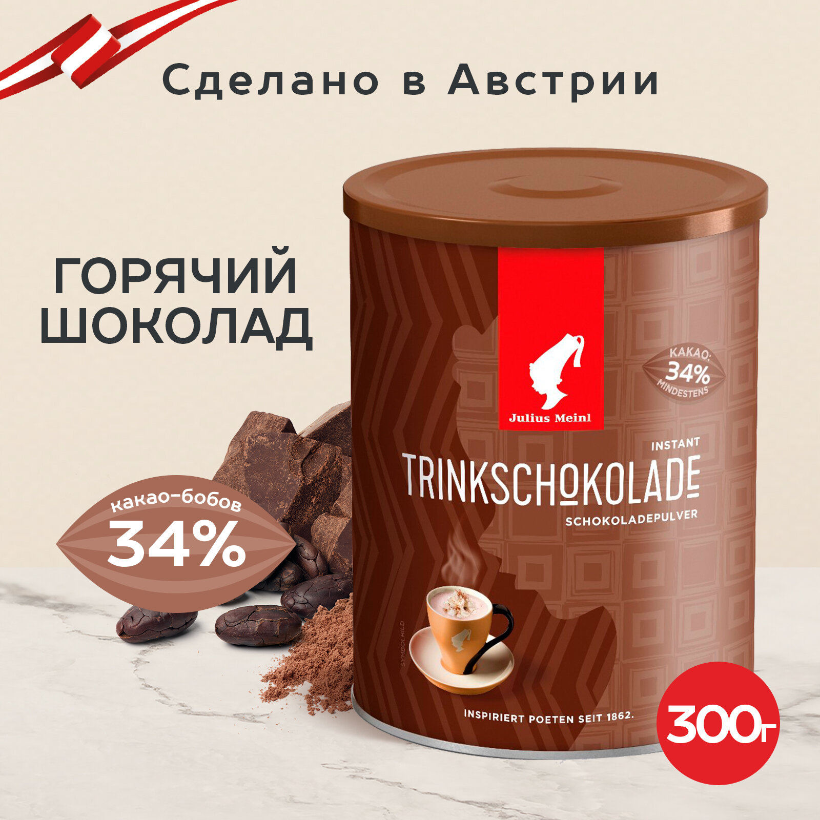 Горячий шоколад премиум качества Julius Meinl, растворимый, 0,3 кг 850 ₽