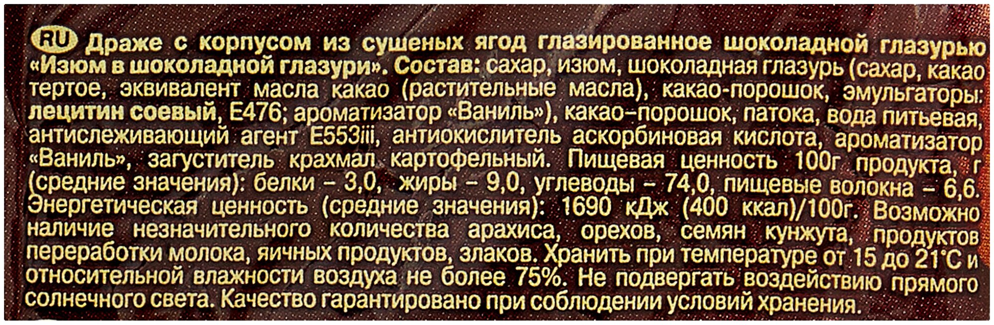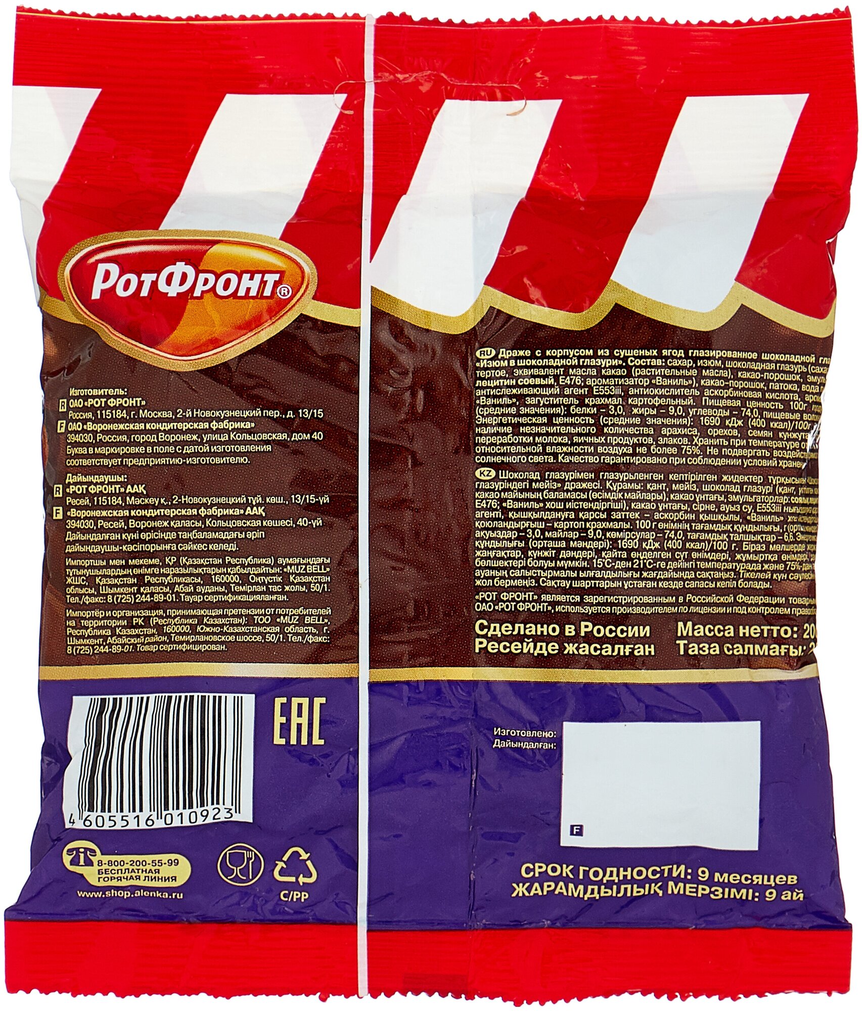 Драже РОТ фронт Изюм в шоколадной глазури, 200г информация:
