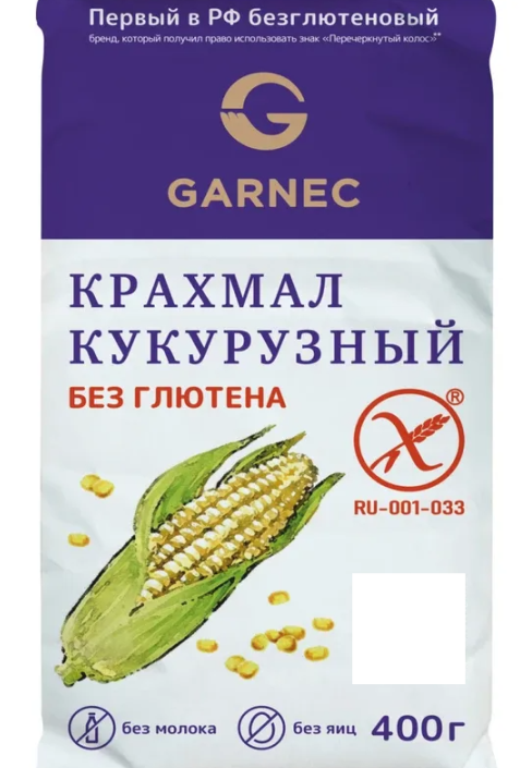 Garnec Кукурузный крахмал без глютена 400 г, пакет