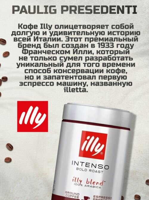 10 цен на Кофе молотый ILLY intenso, арабика, темная обжарка, 250гр