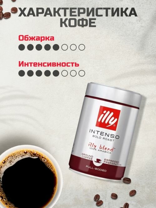 Кофе молотый ILLY intenso, арабика, темная обжарка, 250гр информация: