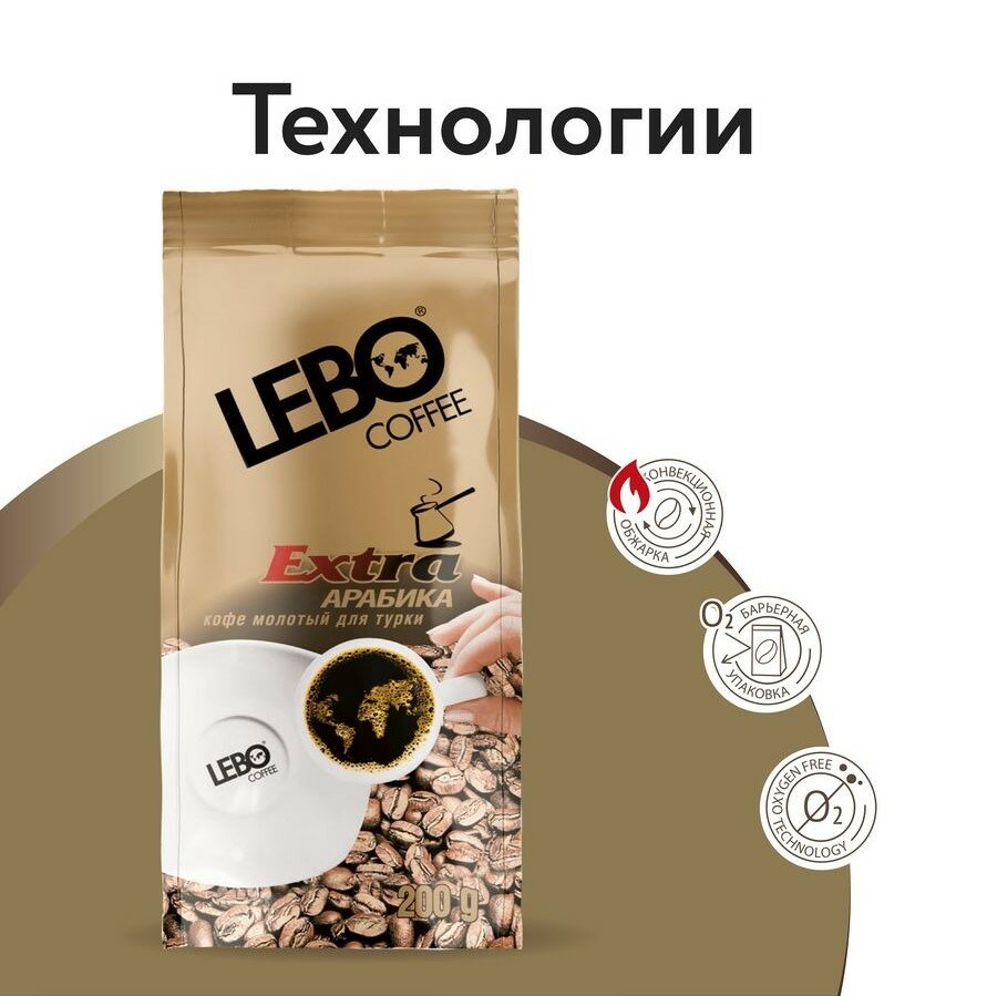 Кофе молотый LEBO Extra Арабика среднеобжаренный, для турки, 200г