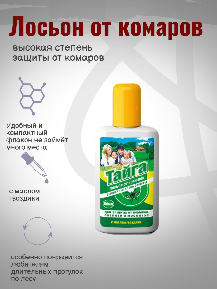 Лосьон Тайга высокая степень защиты от комаров, 50 мл информация: