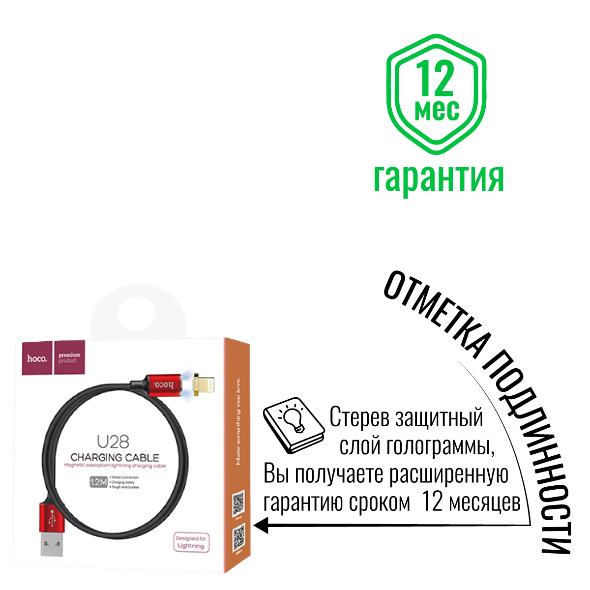 Кабель Hoco U28 USB - Lightning 1 м красный информация: