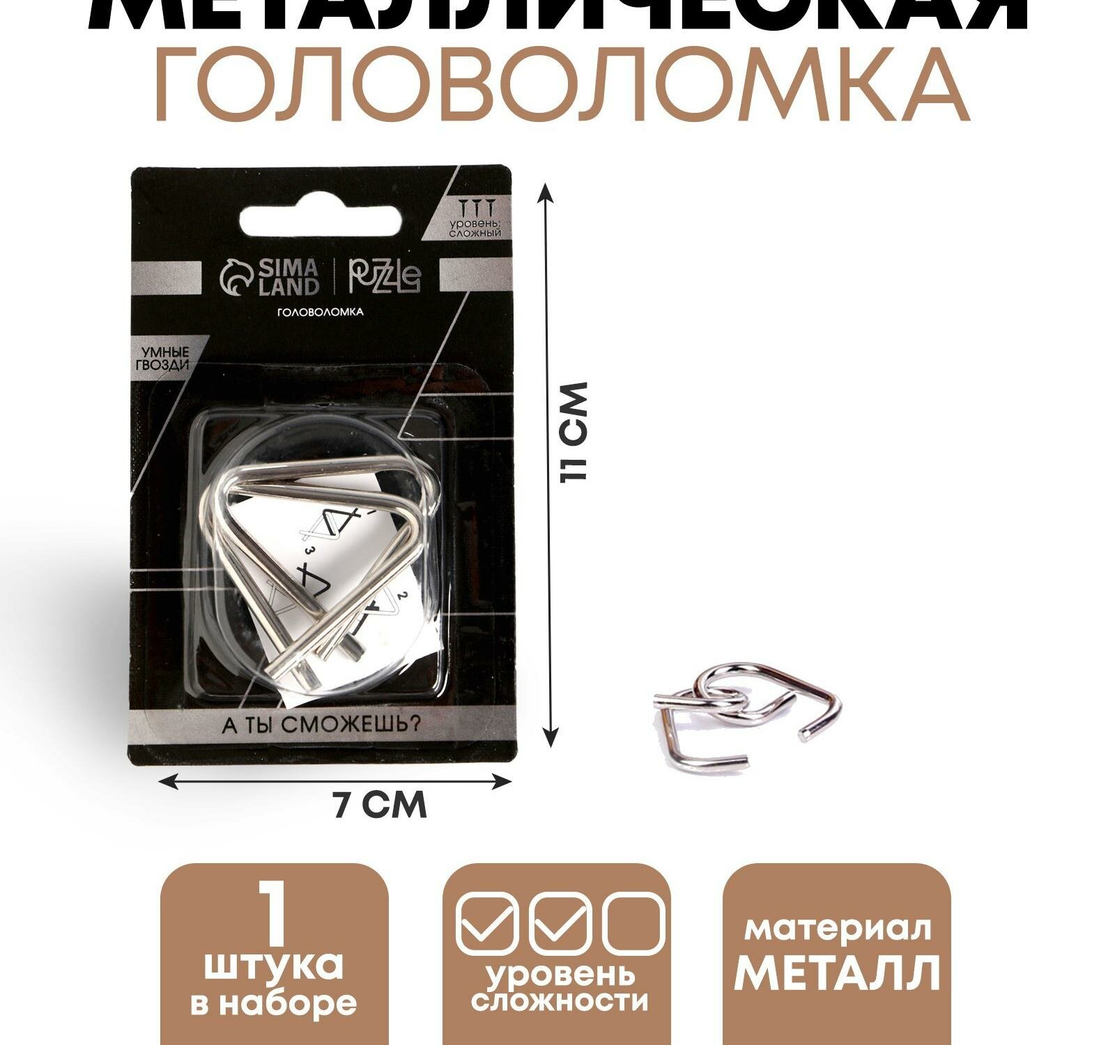 Головоломка «Умные гвозди» №16,на блистере информация: