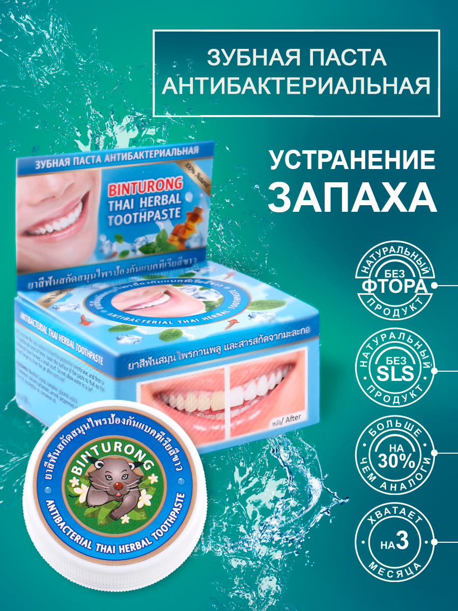 Тайская зубная антибактериальная паста Binturong 30 гр информация: