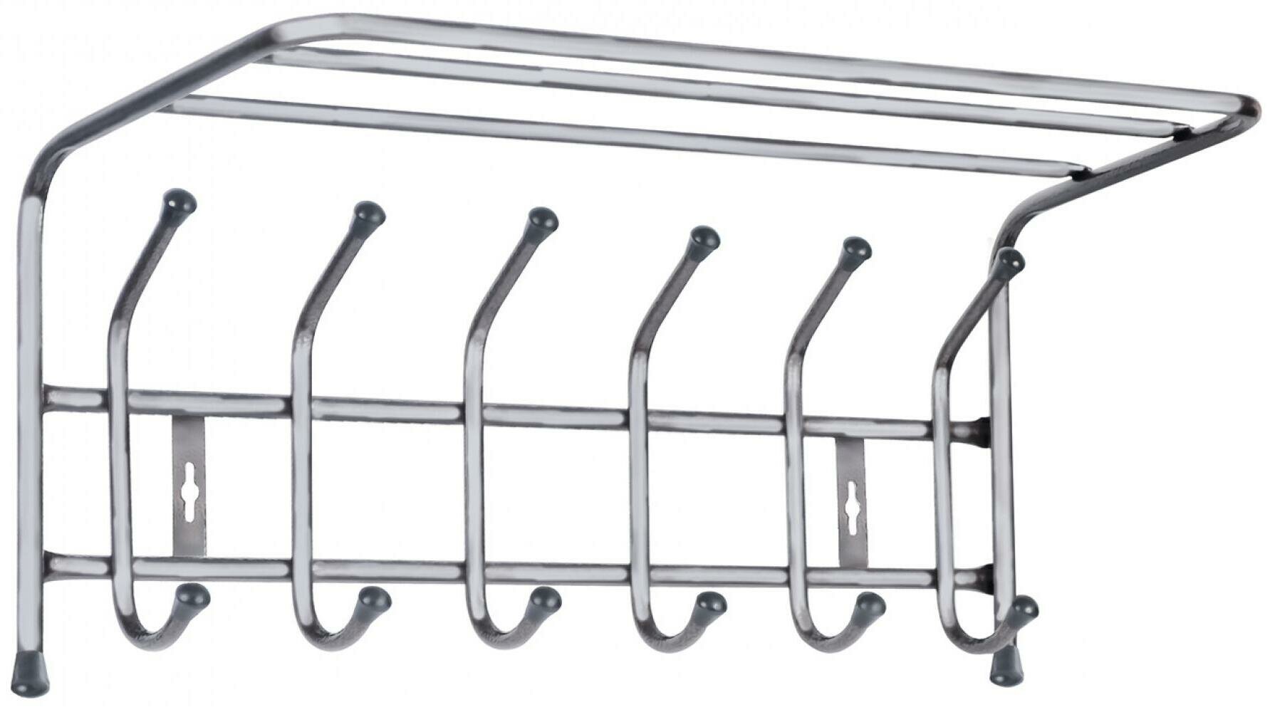 Вешалка с полкой настенная металлическая на 6 крючков ВП6 серебро