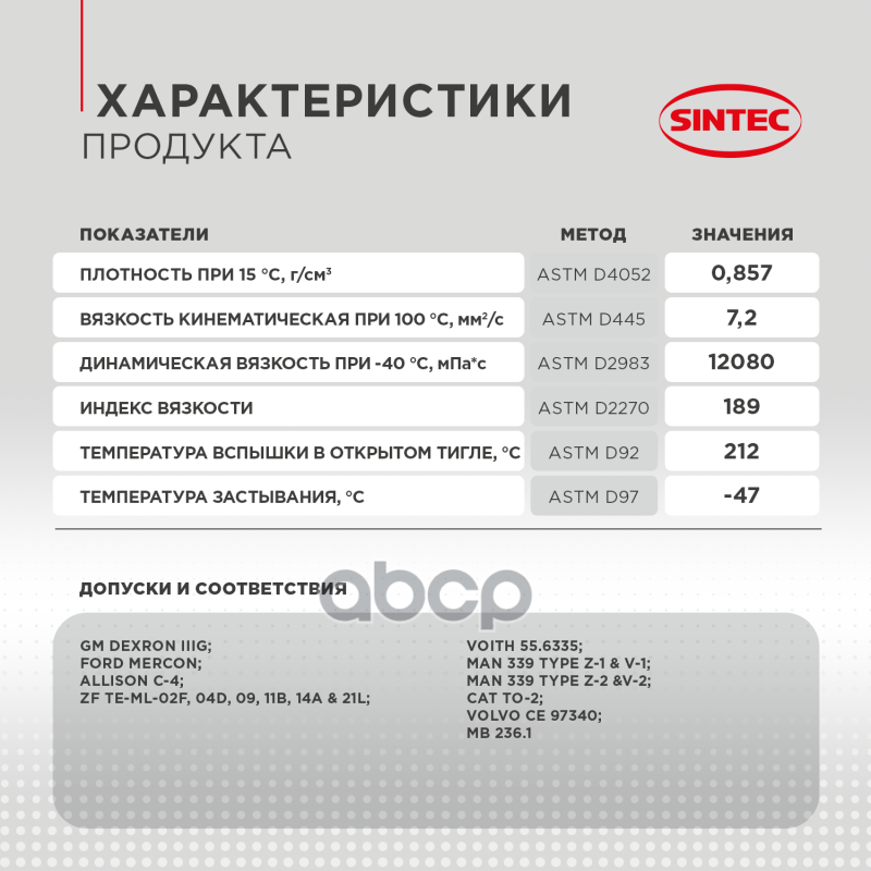 Atf Iii Dexron 4Л SINTEC арт. 900265 2 360 ₽
