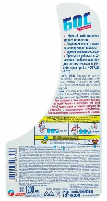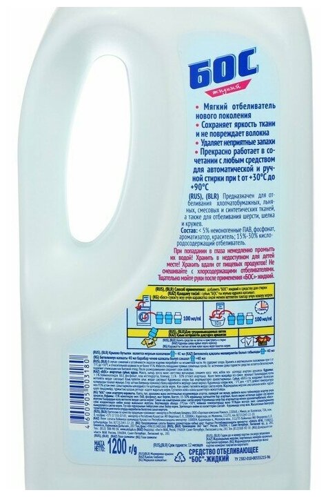 Отбеливатель жидкий кислородный БОС плюс 1200 мл информация:
