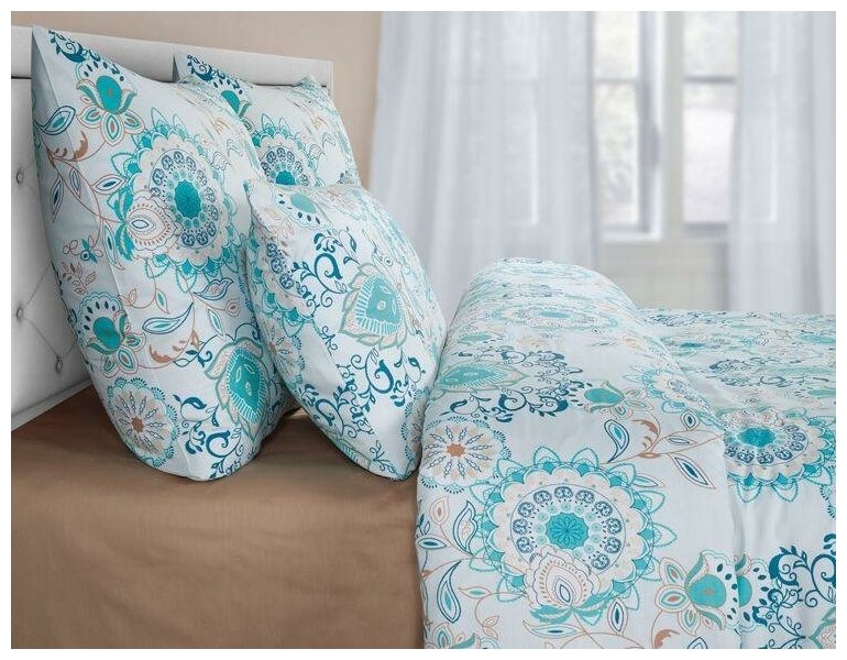 Сатин ЗефирТекс Постельное белье Serenity, сатин, орнамент, синий (2 спальный Макси с нав. 70х70 см,) 3 920 ₽