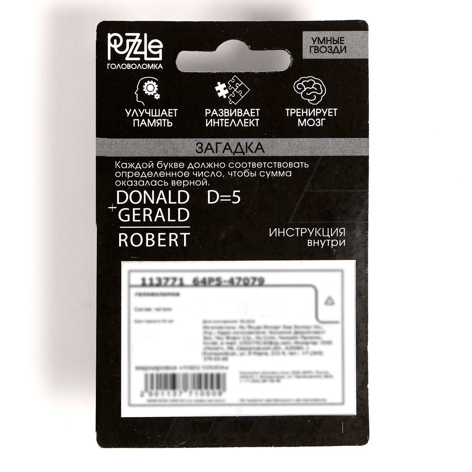 Головоломка «Умные гвозди» №18,на блистере информация: