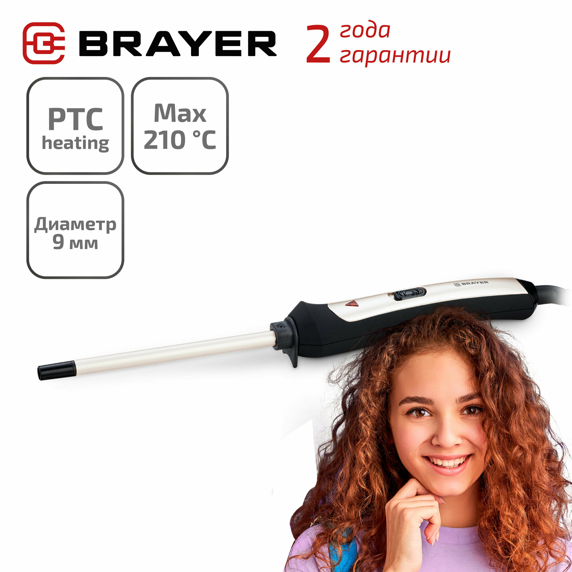 Плойка BRAYER 3202BR, 25 Вт, керамическое покрытие, d=9 мм, 210°C, чёрно-серебристая 3 177 ₽
