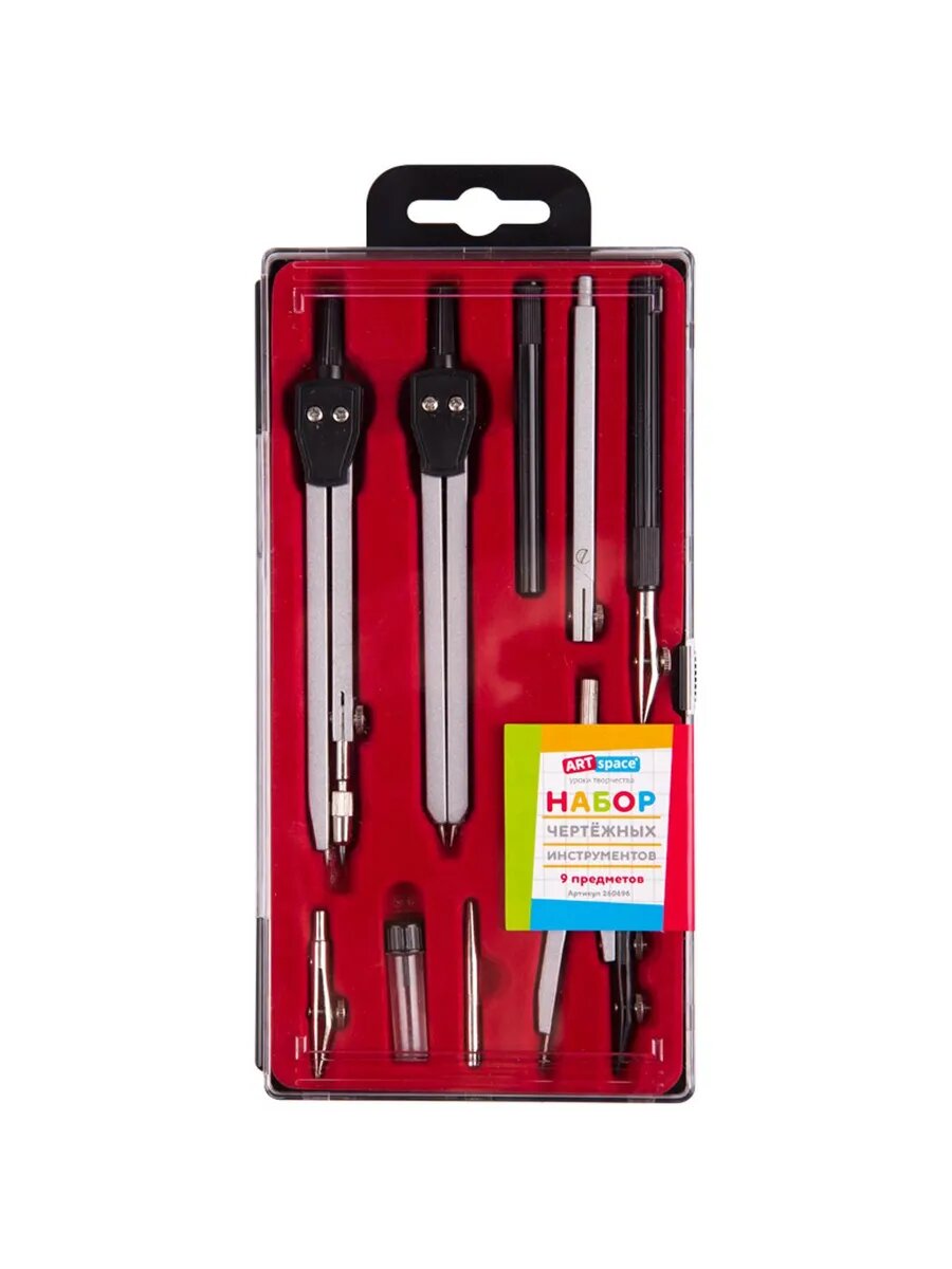 Готовальня ArtSpace, 9 предметов, циркуль 135мм, пластиковый футляр ( Артикул 260696 ) 696 ₽