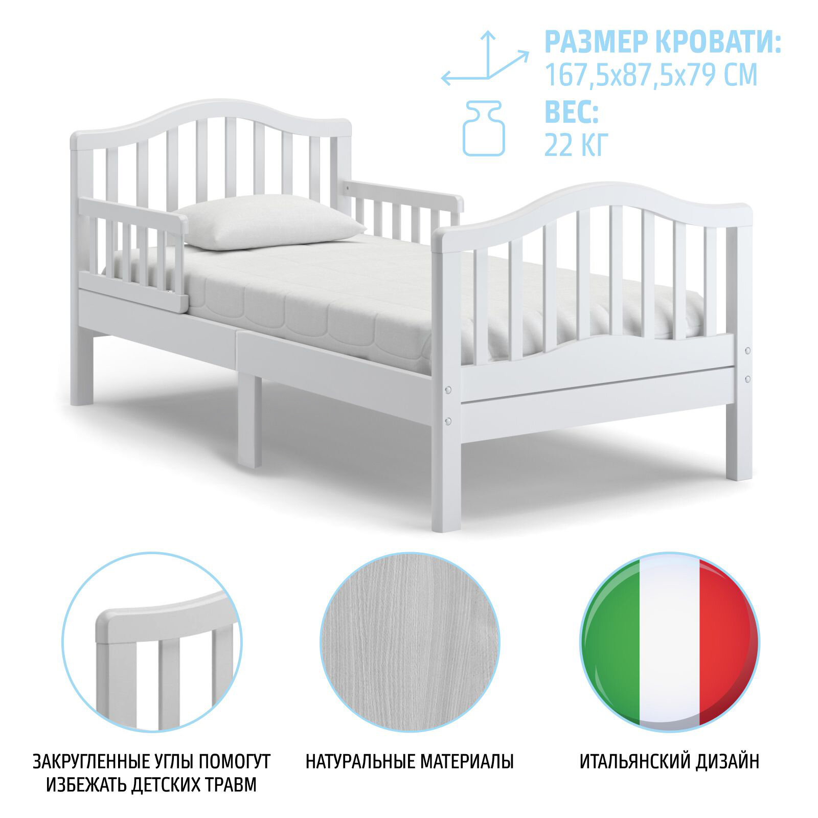 Кровать подростковая Nuovita Gaudio 160х80 (Bianco/Белый) 43 009 ₽
