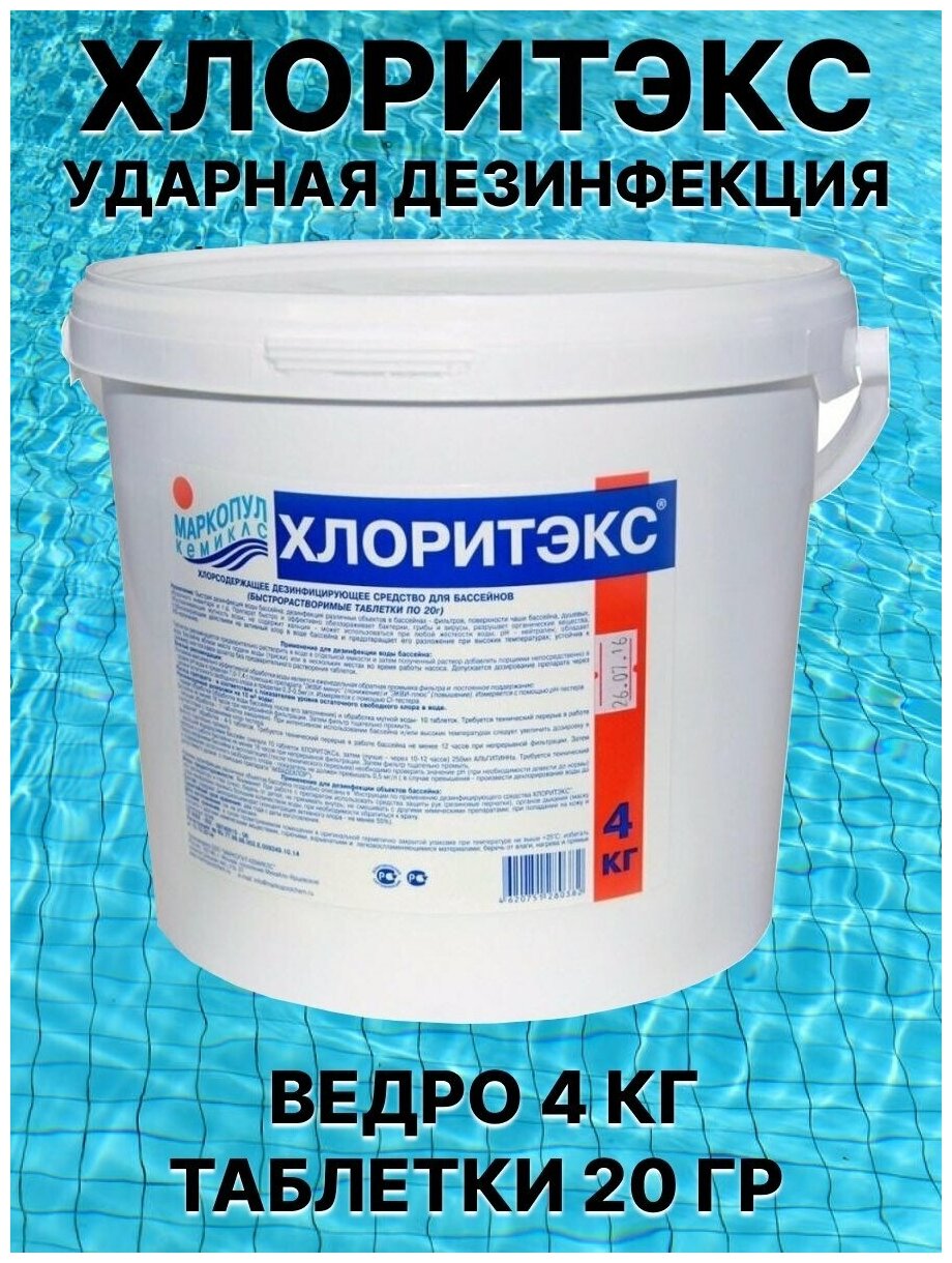 Дезинфицирующее средство "Хлоритэкс" М53 для воды в бассейне, ведро,4 кг Маркопул (0276) 4404790 .