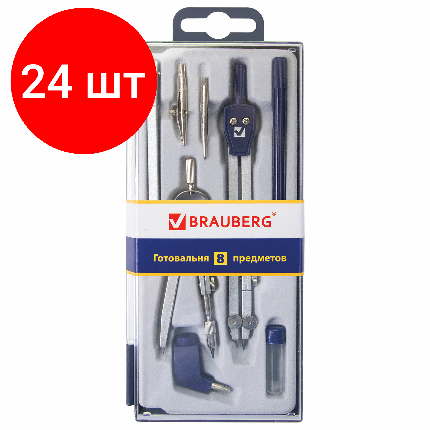 10 цен на Комплект 24 шт, Готовальня BRAUBERG "Student Oxford", 8 предметов: наполнение-1, пенал с подвесом, 210350
