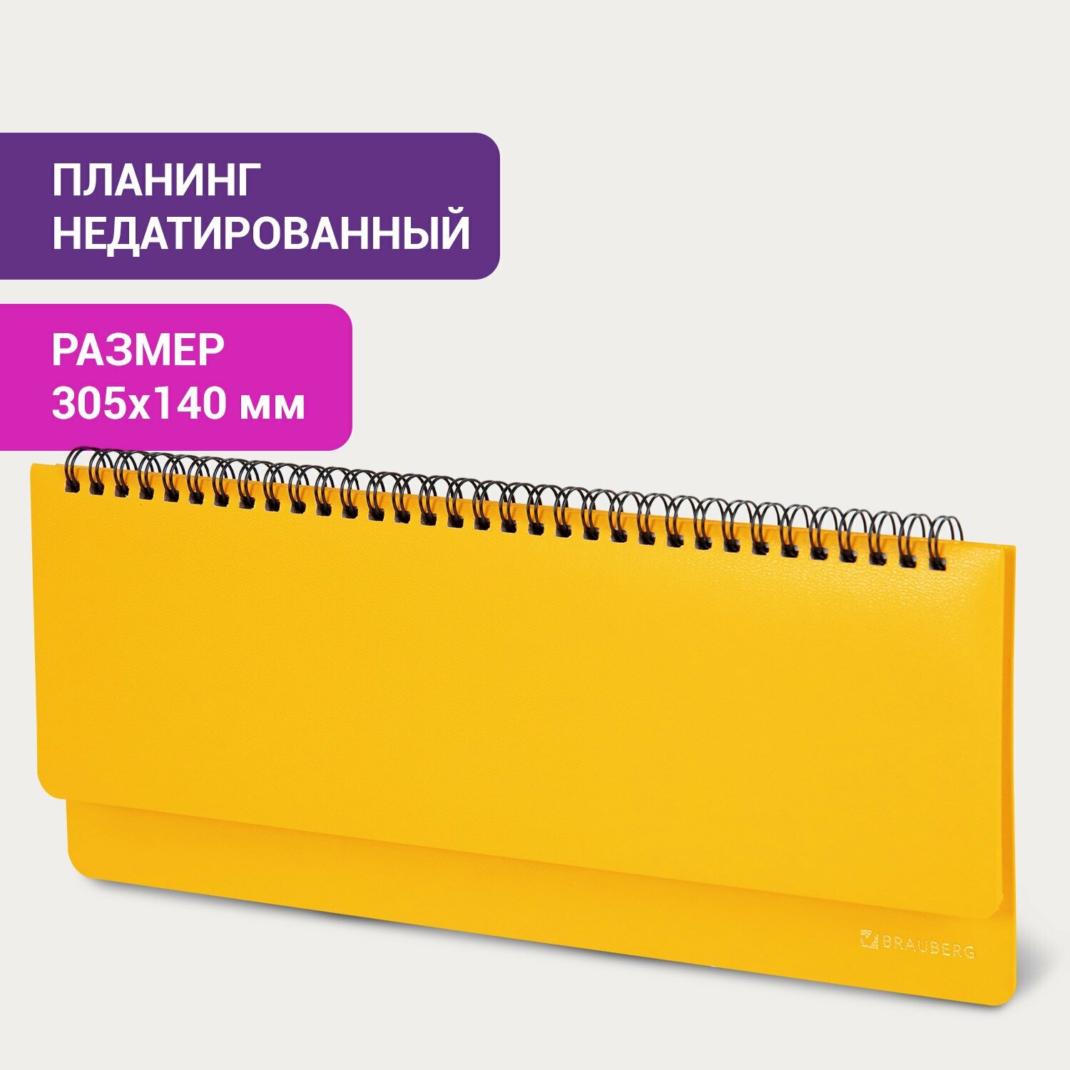 Планинг (ежедневник-планер), записная книжка, блокнот недатированный настольный горизонтальный (305x140 мм) Brauberg балакрон, 60 л., желтый, 111696