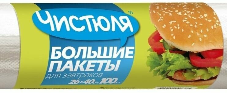 Чистюля пакеты для завтраков большие 26*40 см 100 шт