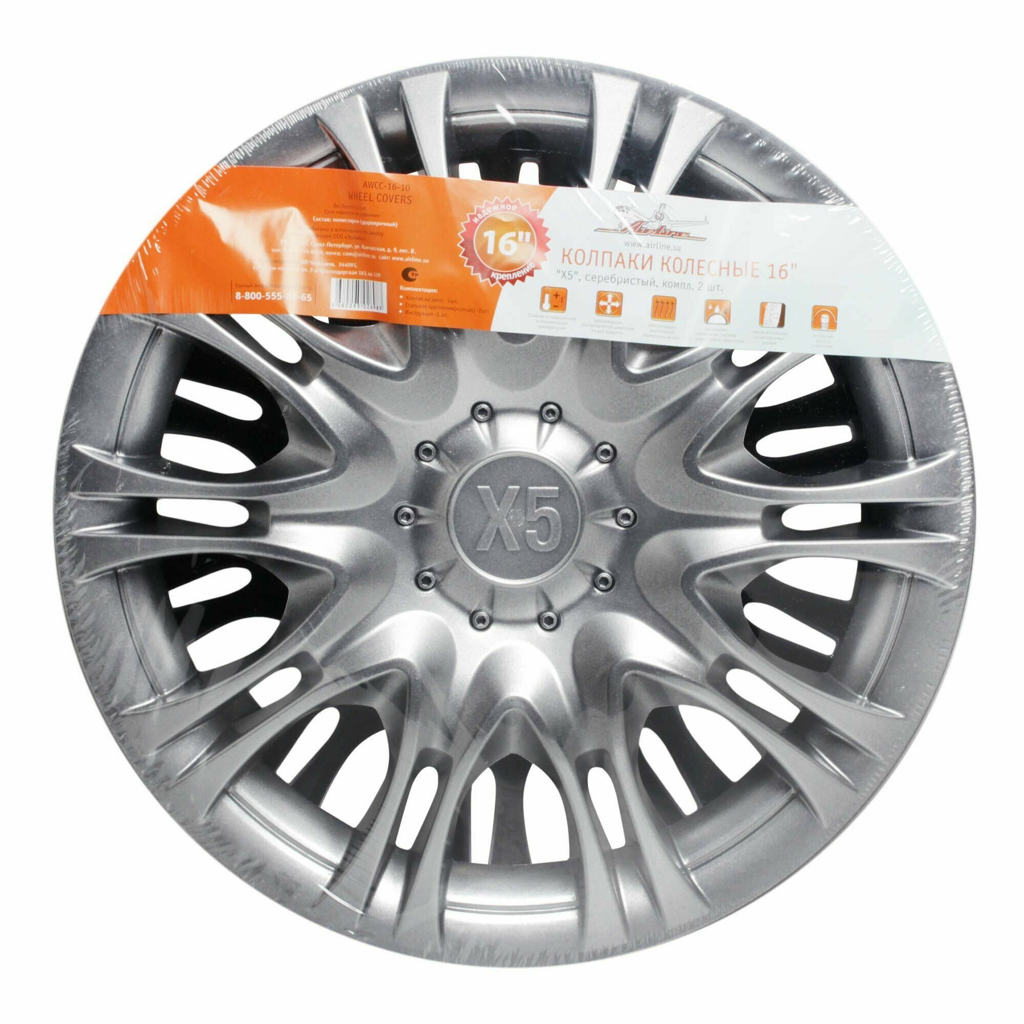 Колпаки Колесные Airline 16" "Х5" Серебристый, Компл. 2шт. AIRLINE арт. AWCC-16-10
