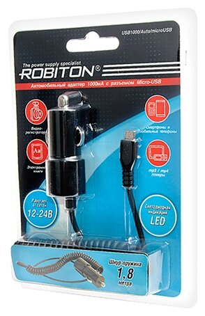 Отзывы на Автомобильное зарядное устройство с выходом на Micro-USB со шнуром-пружиной до 1,8м - USB1000/Auto/microUSB (Robiton) (код заказа 13908 )