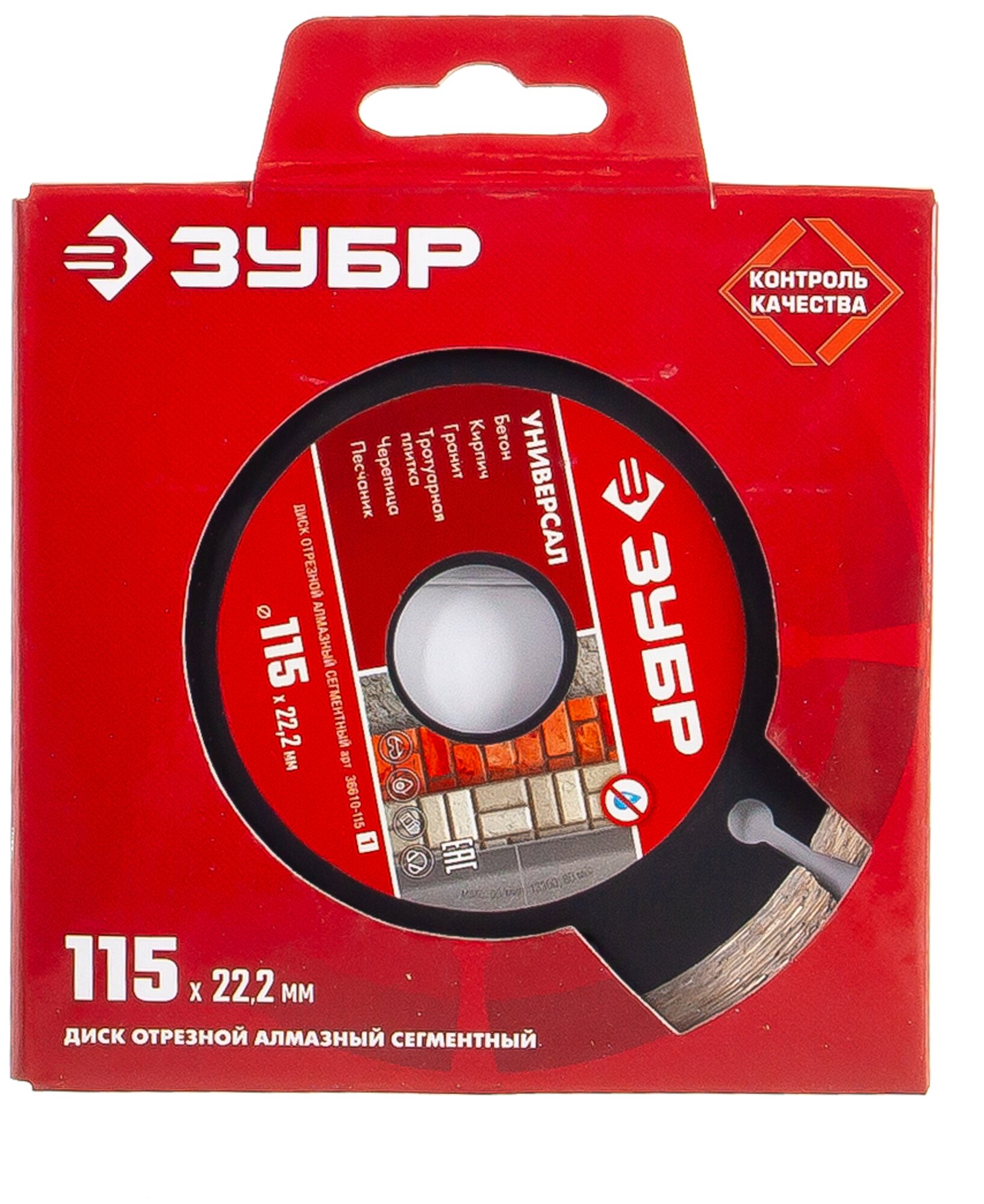 ЗУБР универсал 115 мм, диск алмазный отрезной сегментный, бетон, кирпич, гранит, камень, плитка, черепица (115х22.2 мм, 7х1.9 мм), (36610-115_z01)