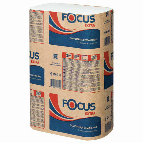 Полотенца бумажные Focus Extra Z-сложения белые двухслойные 5048677 200 лист.
