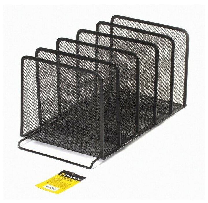 Лоток для бумаг веерный BRAUBERG "Basic" 7-ми секционный 6 отделений сетчатый черный, 1 шт