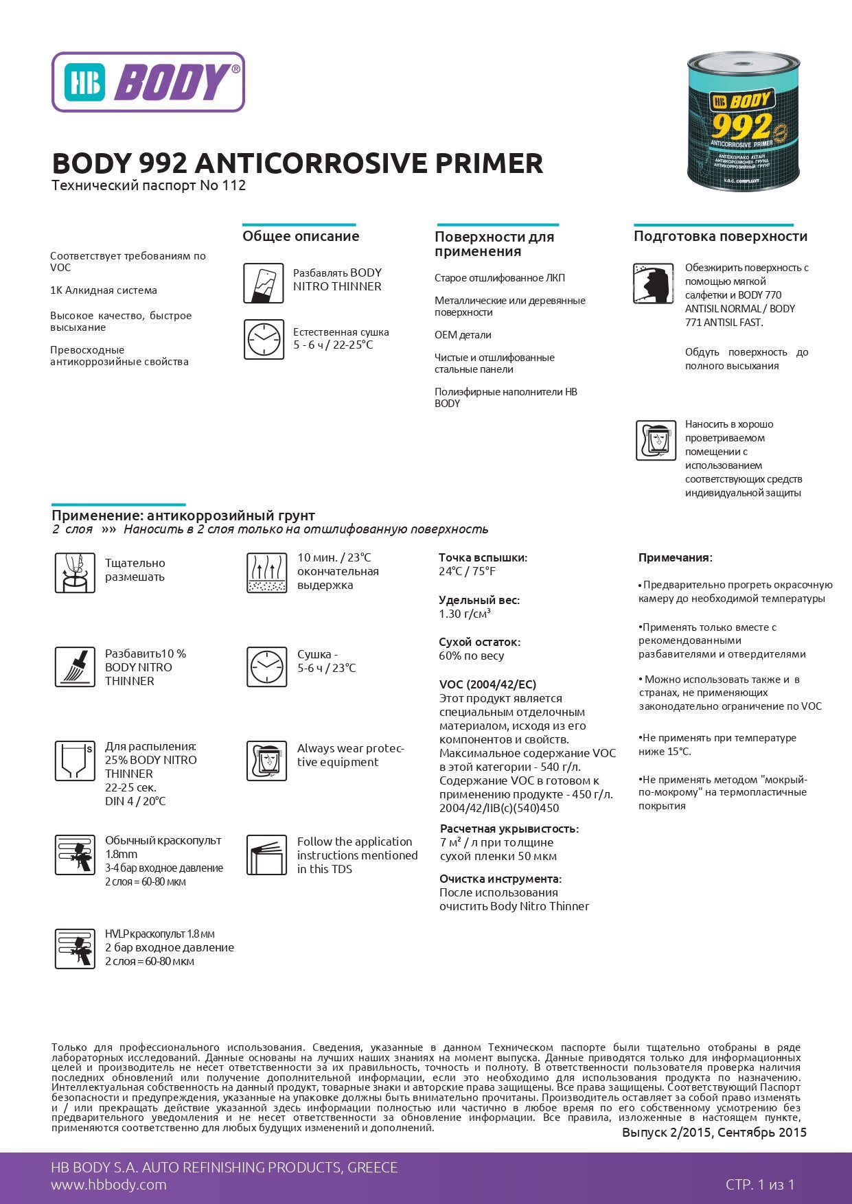 Грунт Body 992 серый 1 л HB-BODY 9920700001 | цена за 1 шт информация:
