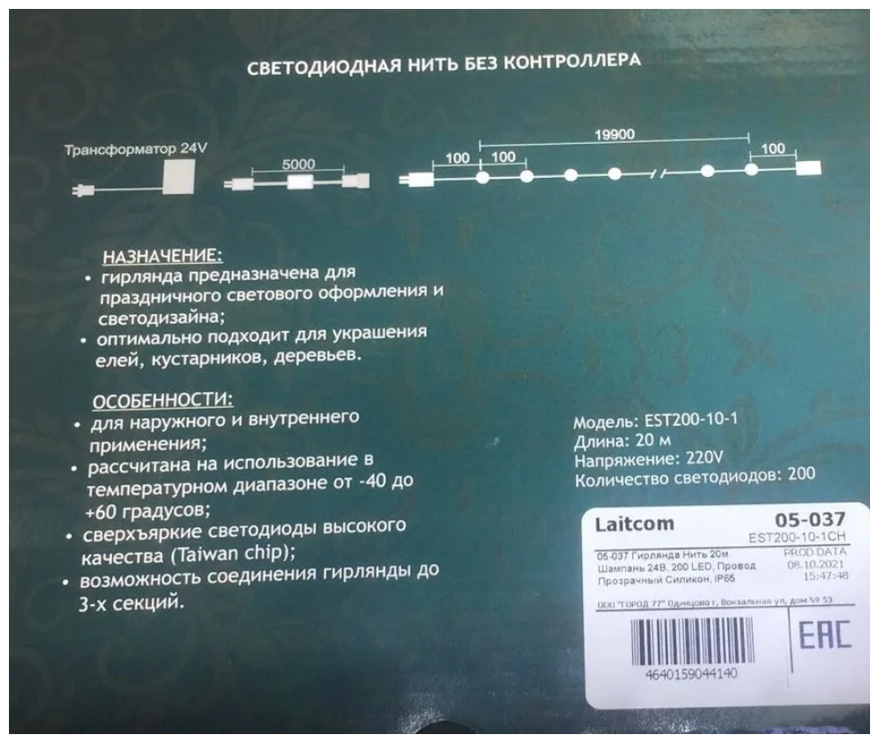 Гирлянда Нити (на ёлку) EST200-10-1CH информация:
