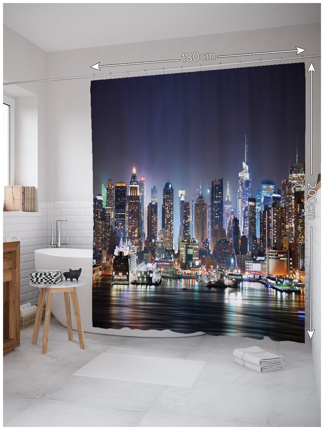 Штора (занавеска) для ванной JoyArty "Город современности" из сатена, 180х200 см с крючками информация: