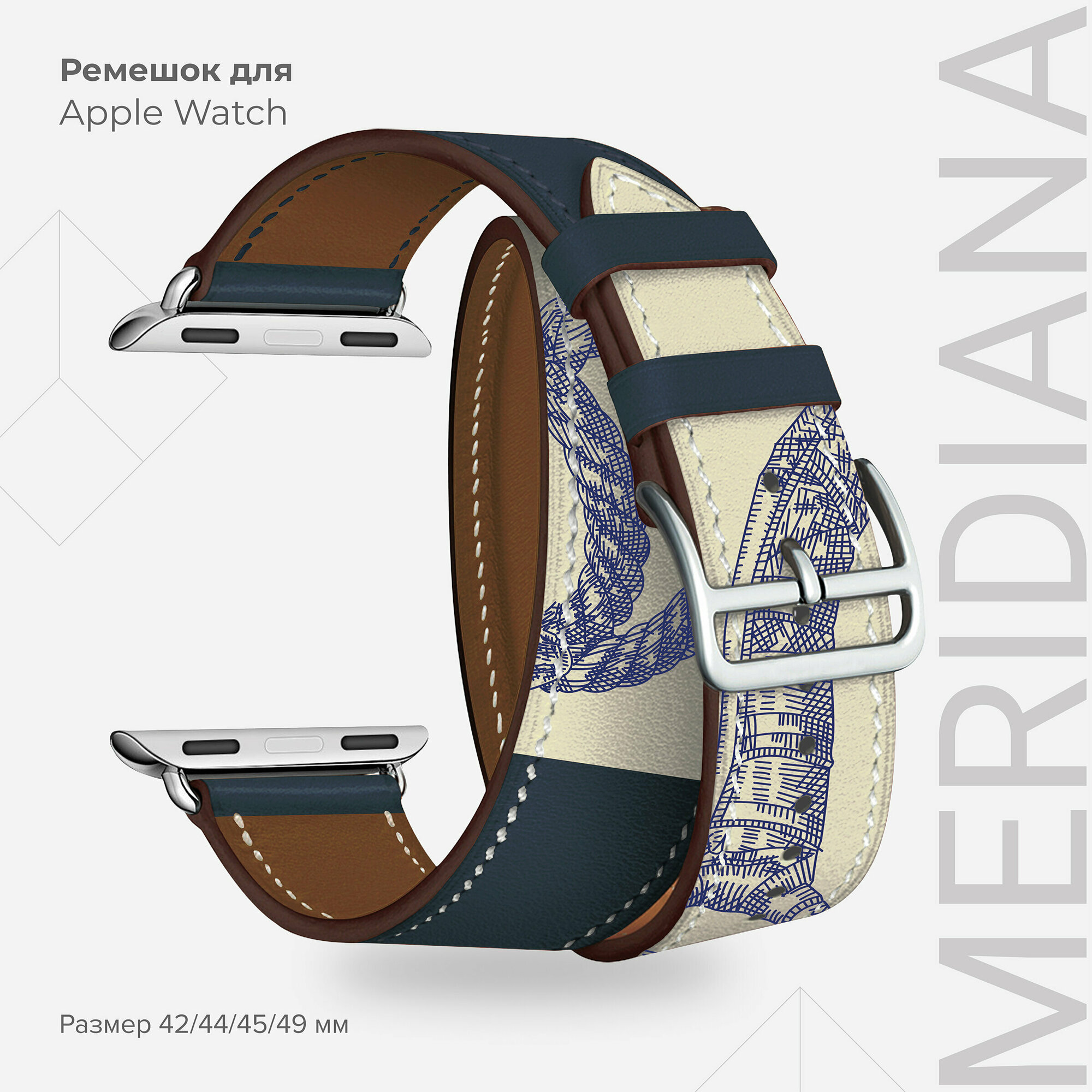Кожаный ремешок в два оборота для Apple Watch 42/44 mm LYAMBDA MERIDIANA LWA-01-44-BLP Blue-print