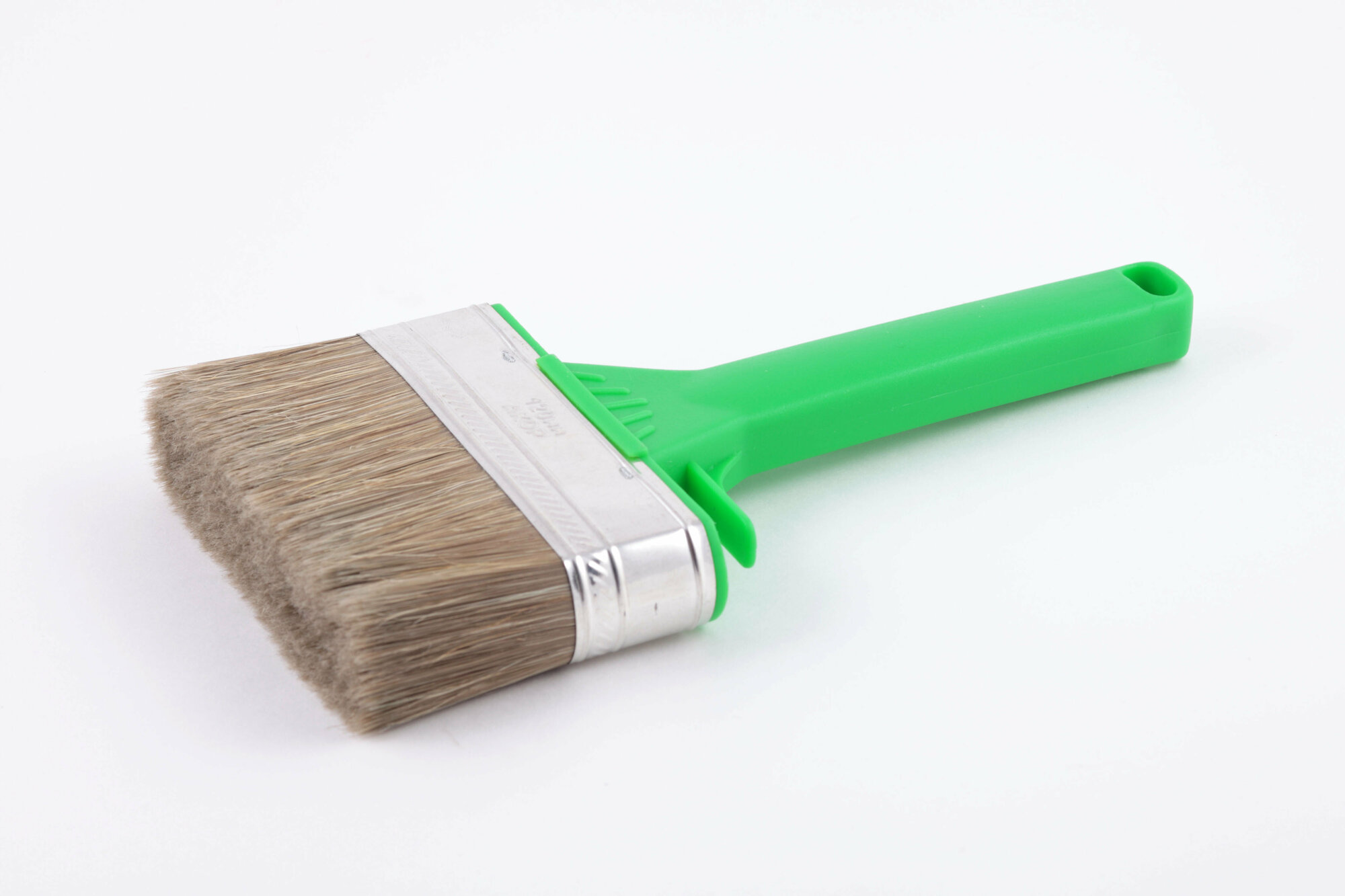 Кисть малярная флейцевая плоская 4" (101 мм), натуральная щетина, пластмассовая рукоятка, 1 штука/ кисточка для краски, лака, ЛКМ