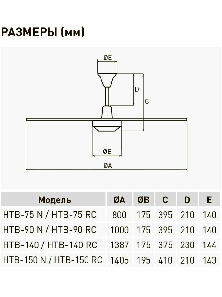 Вентилятор потолочный HTB 75 RC диаметр крыльчатки 80 информация: