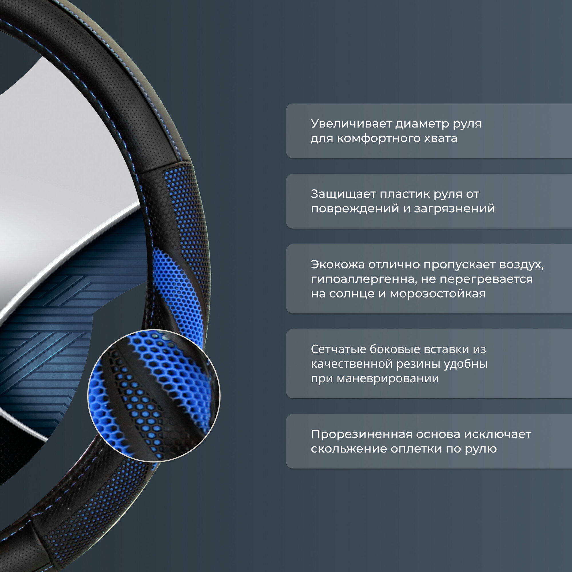 Оплетка руля "M" d37-39см "PSV" SPACER кожа, черно-синий