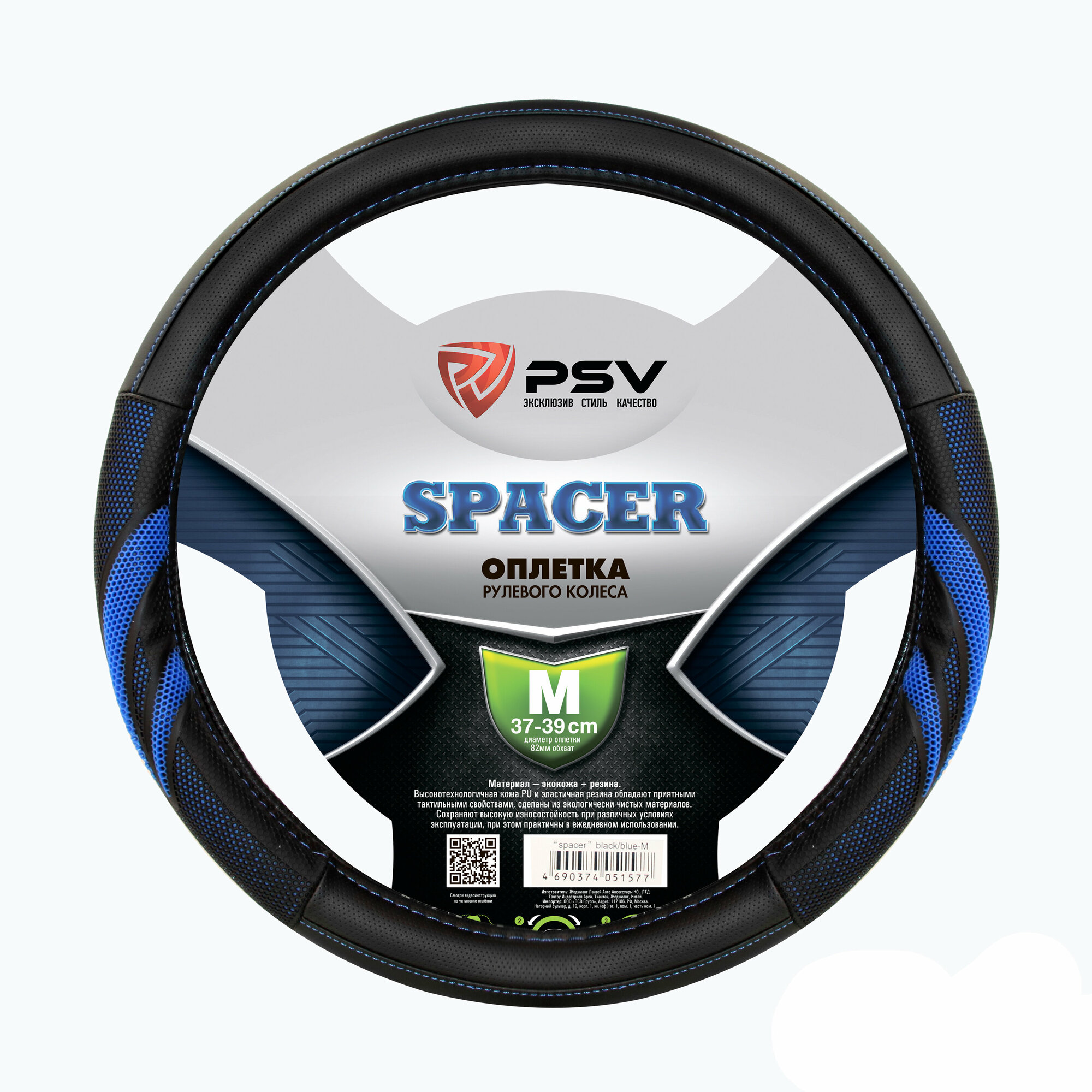 PSV 130684 Оплетка на руль "PSV" иск.кожа SPACER (Черно-Синий) M