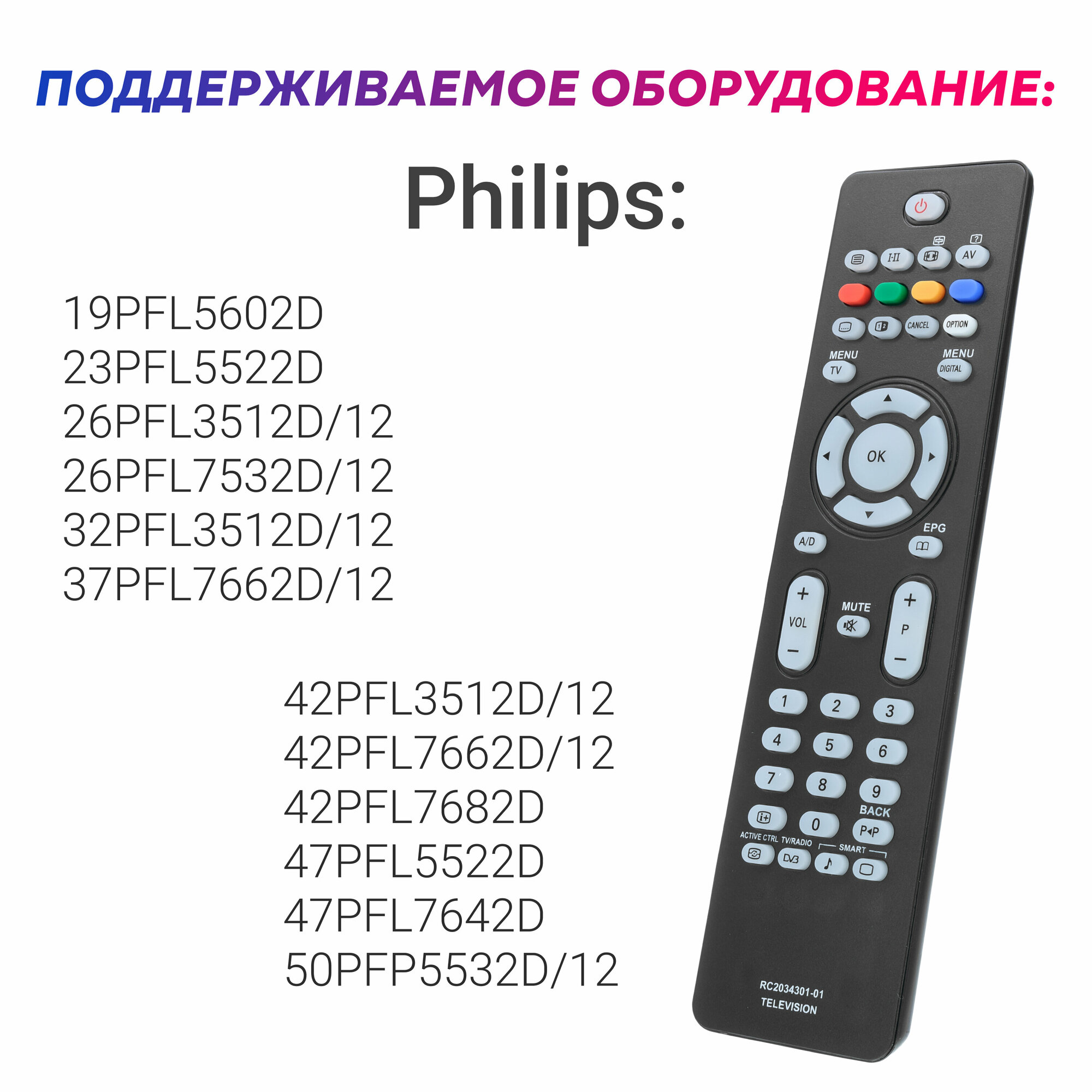 Пульт ДУ для Philips RC-2034301/01 информация:
