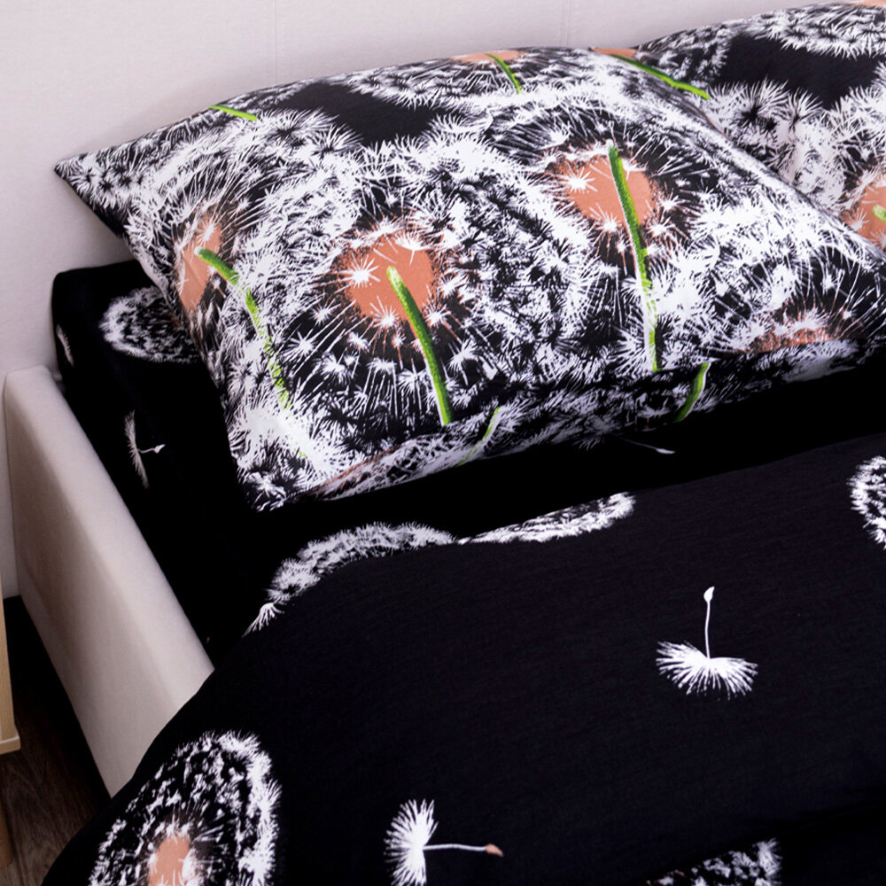 Постельное белье Василиса Белые одуванчики, бязь, евростандарт, черный/белый