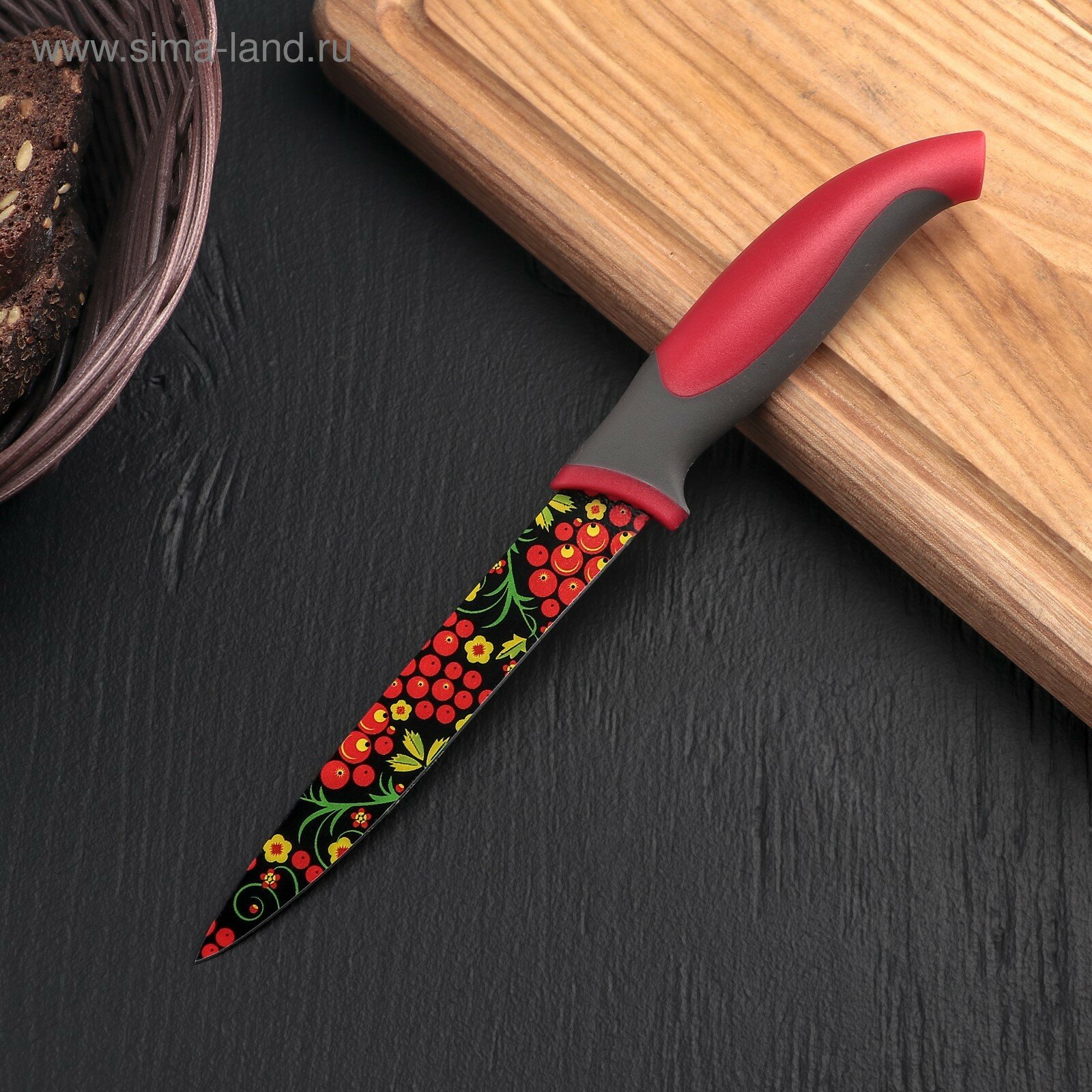 Нож кухонный с антиналипающим покрытием Доляна Русский узор , лезвие 12 см информация: