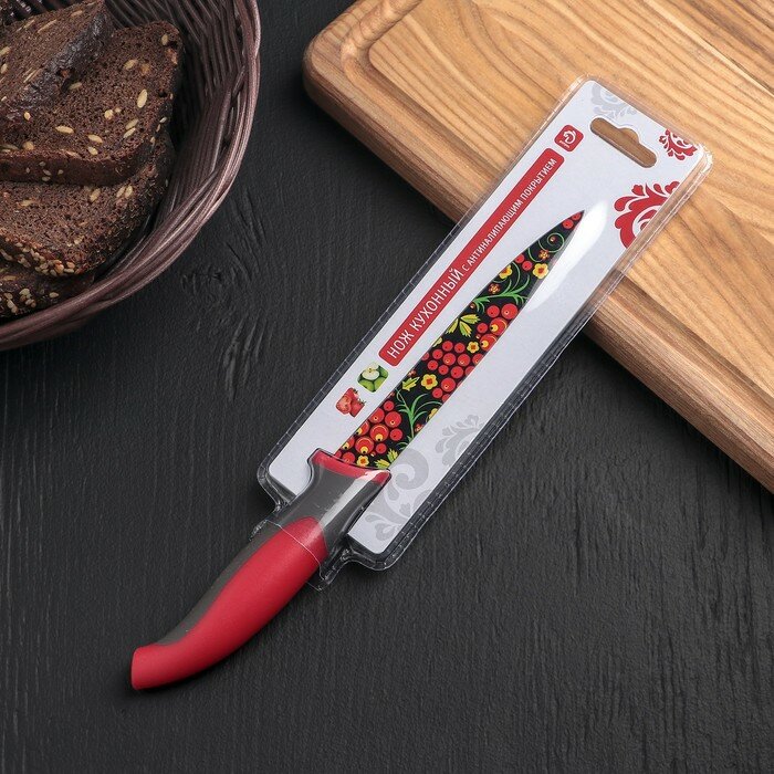 Доляна Нож кухонный с антиналипающим покрытием Доляна «Русский узор», лезвие 12 см информация: