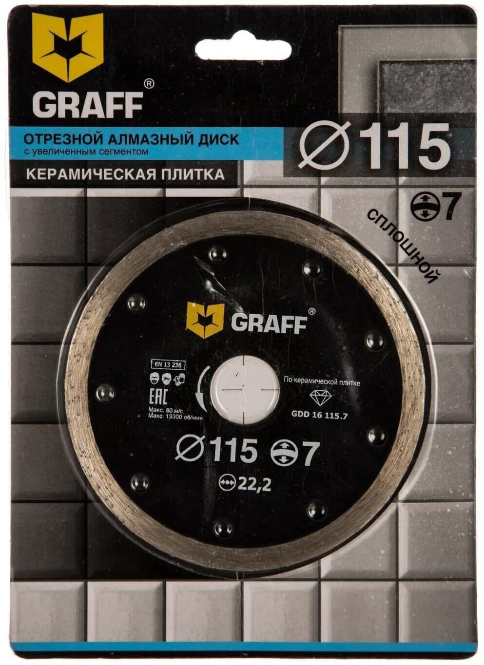 Сплошной алмазный диск по керамической плитке GRAFF GDD 16 115.7