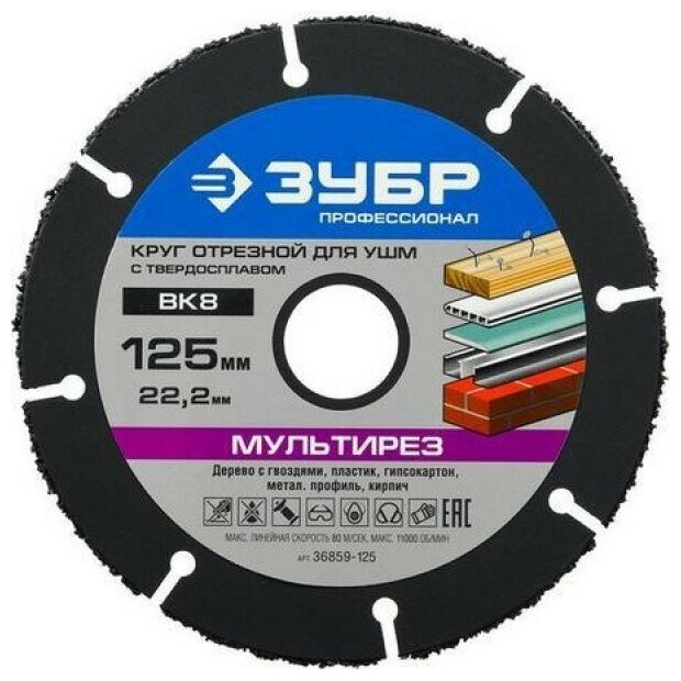 Отрезной круг МУЛЬТИРЕЗ-ВК8 для УШМ 125х22,2 ЗУБР 36859-125