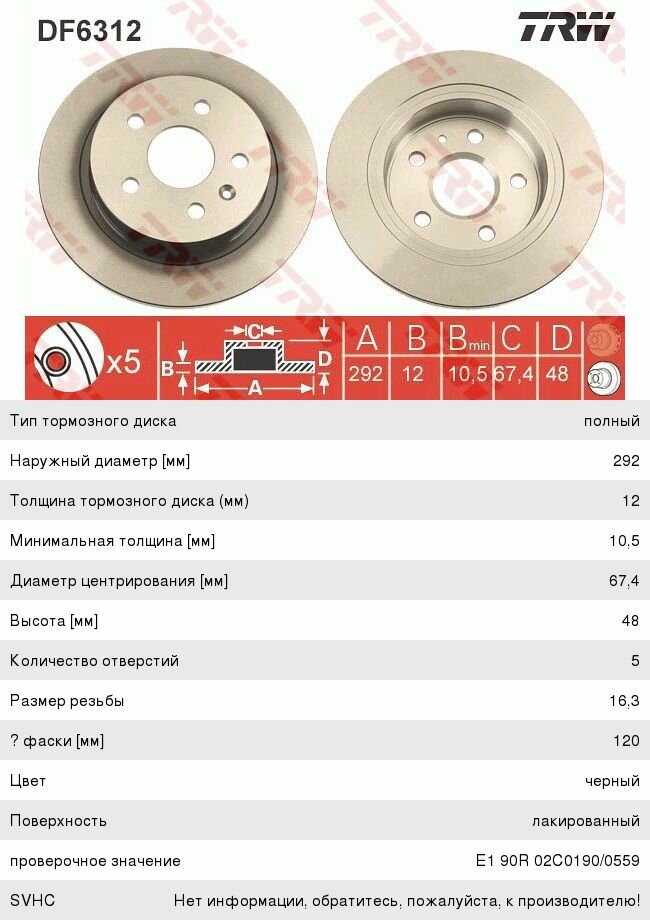 Тормозной диск, TRW DF6312 (2 шт.) информация: