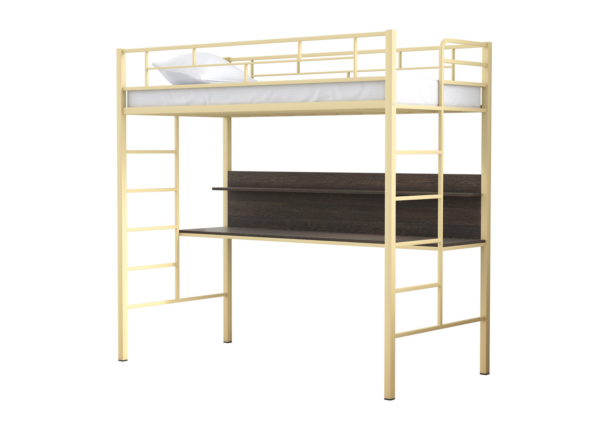 Кровать-чердак "Амстердам" Слоновая кость со столом Венге/ детская/ 90х190 см/ двухъярусная кровать с рабочей зоной/ для детей и взрослых/ железная/ металлическая/ двухэтажная/ взрослая информация: