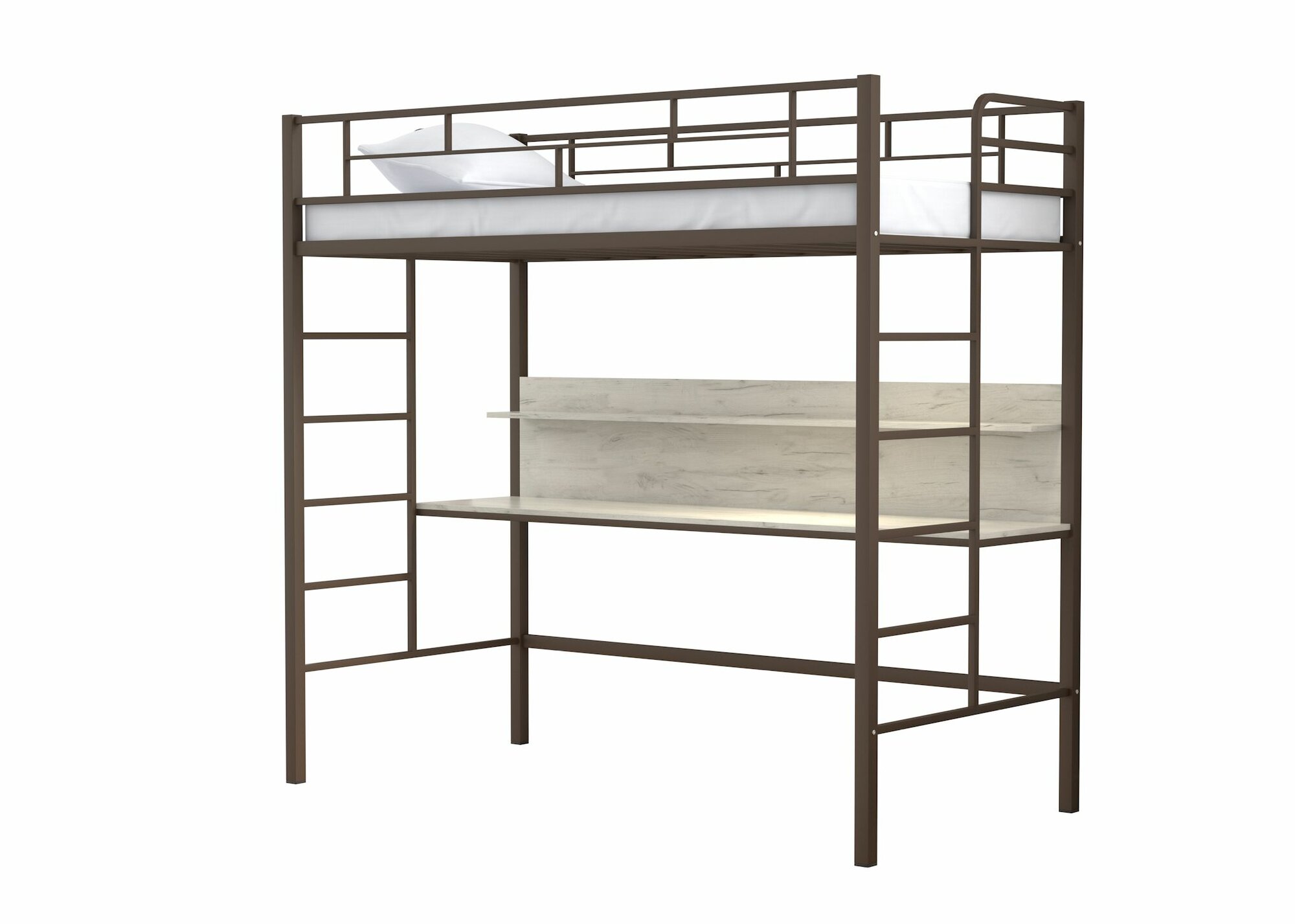 Кровать чердак "Амстердам-120" Коричневый со столом Белым/ детская/ 120х190 см/ двухъярусная кровать с рабочей зоной/ для детей и взрослых/ металлическая/ двухэтажная/ взрослая/ двуспальная