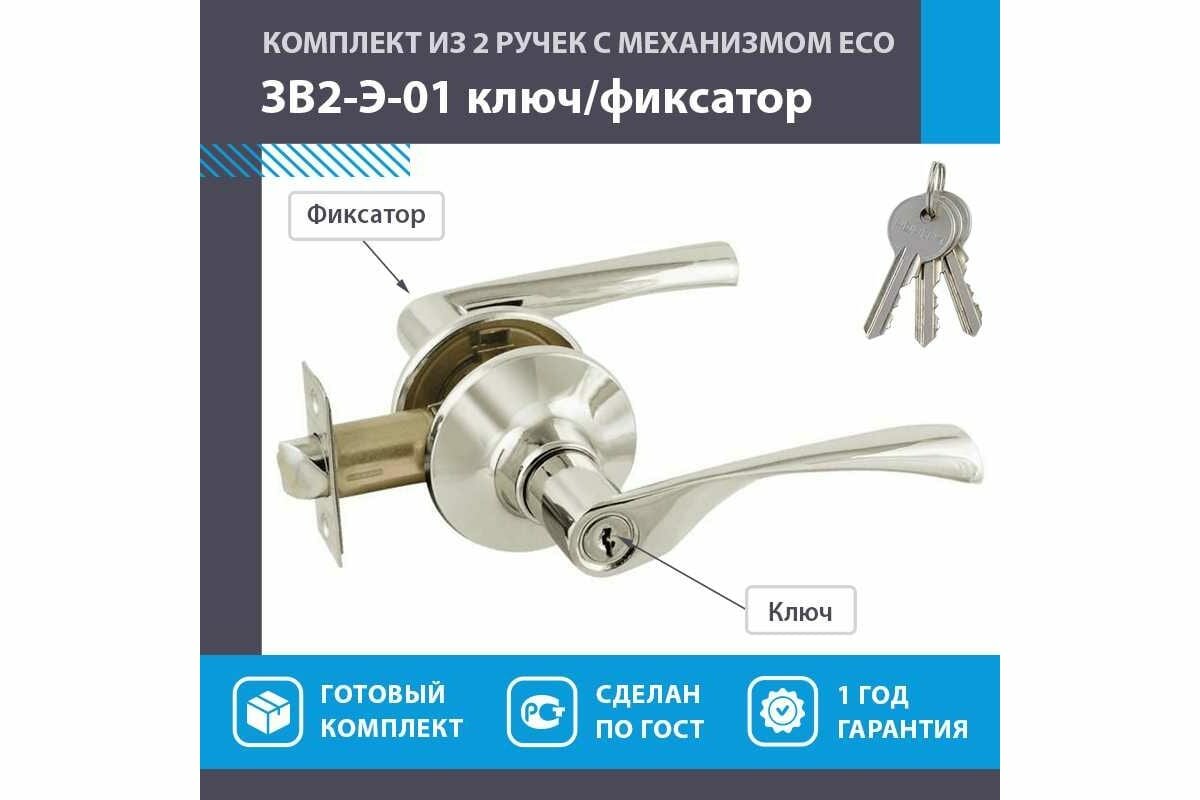 Ручки с защелкой межкомнатные Нора-М ЗВ2-Э-01 ключ/фиксатор - Матовый никель