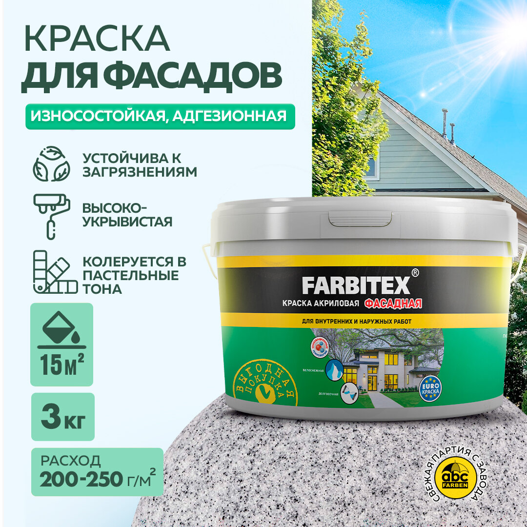 10 цен на Краска фасадная акриловая FARBITEX 3 кг